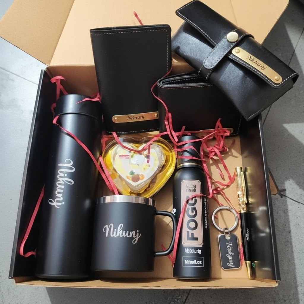 Premium Personalized Gift Hamper is more than just a collection of items; it’s a curated experience designed to celebrate individuality and style. Typically finished in sleek matte black or rich leather tones, these sets are perfect for birthdays, anniversaries, or corporate milestones.